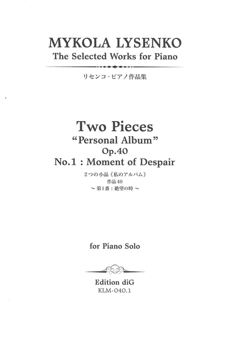 2 Pieces "Personal Album" Op.40-1 Moment of Despair